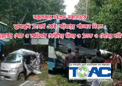 কক্সবাজার – চট্টগ্রাম মহাসড়কে একই পরিবারের পাঁচজন নিহত: সড়ক নিরাপত্তা নিশ্চিত ও মহাসড়ক ৬ লেনের দাবি টুয়াকের