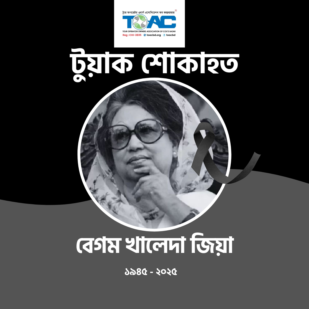 প্রাক্তন প্রধানমন্ত্রী ও বাংলাদেশ জাতীয়তাবাদী দল (বিএনপি)-এর চেয়ারপারসন দেশনেত্রী বেগম খালেদা জিয়ার ইন্তেকালে ট্যুর অপারেটর ওনার্স এসোসিয়েশন অব কক্সবাজার (টুয়াক) গভীর শোক ও দুঃখ প্রকাশ করছে।